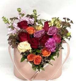 סידור פרחים בסגנון צרפתי בתיק דמוי עור